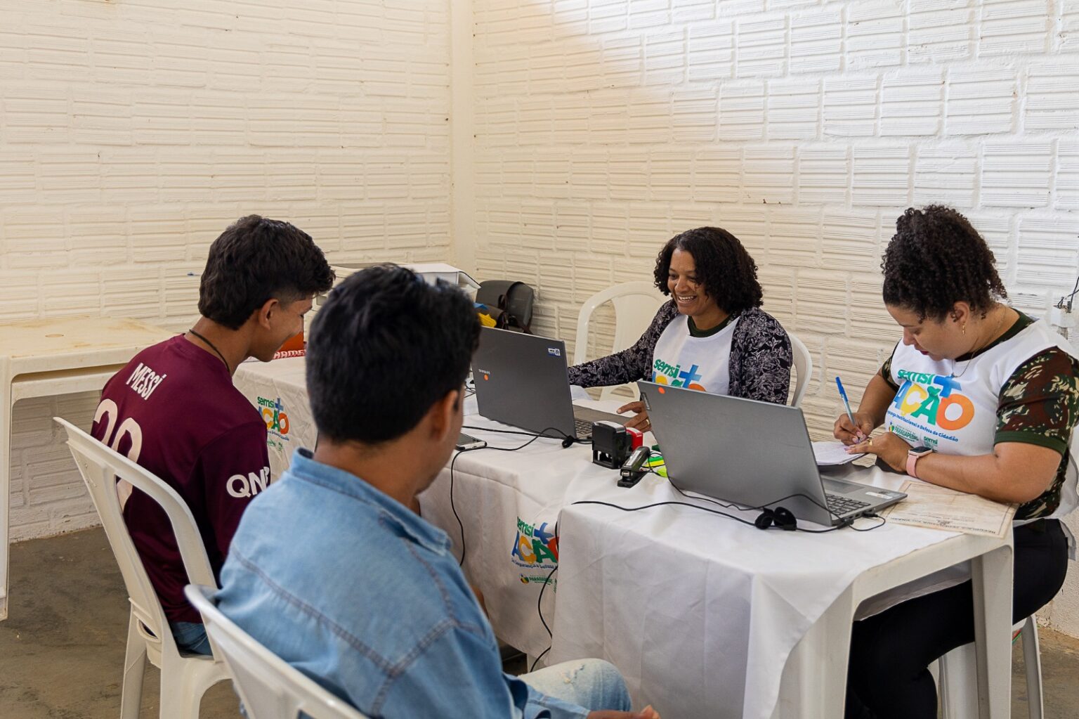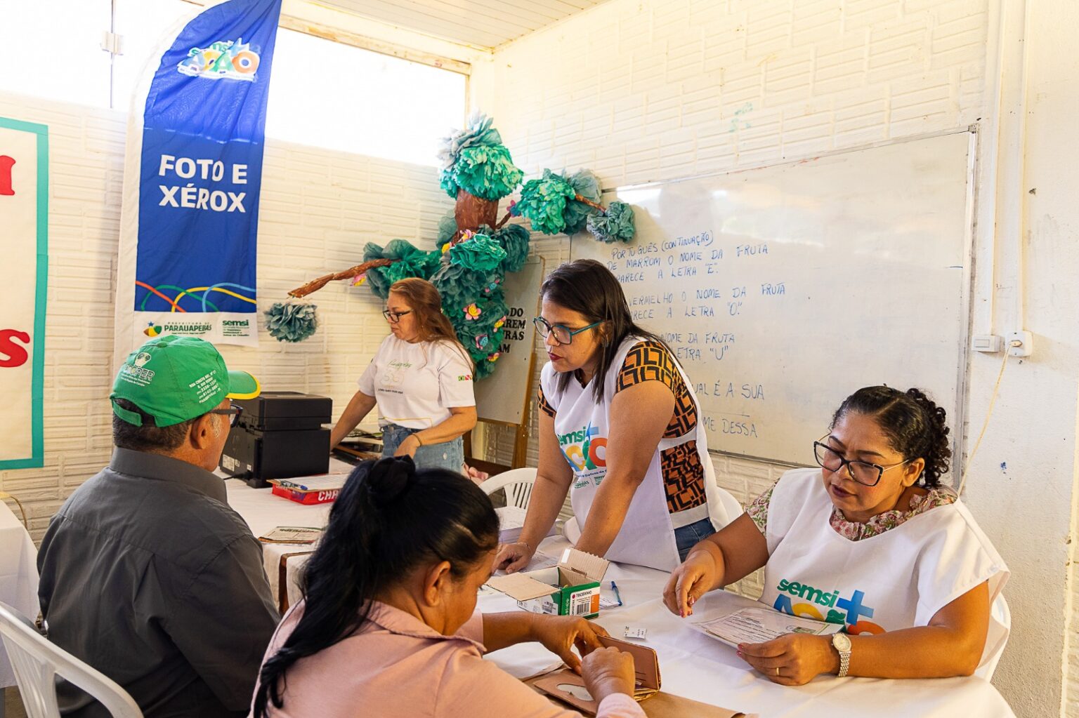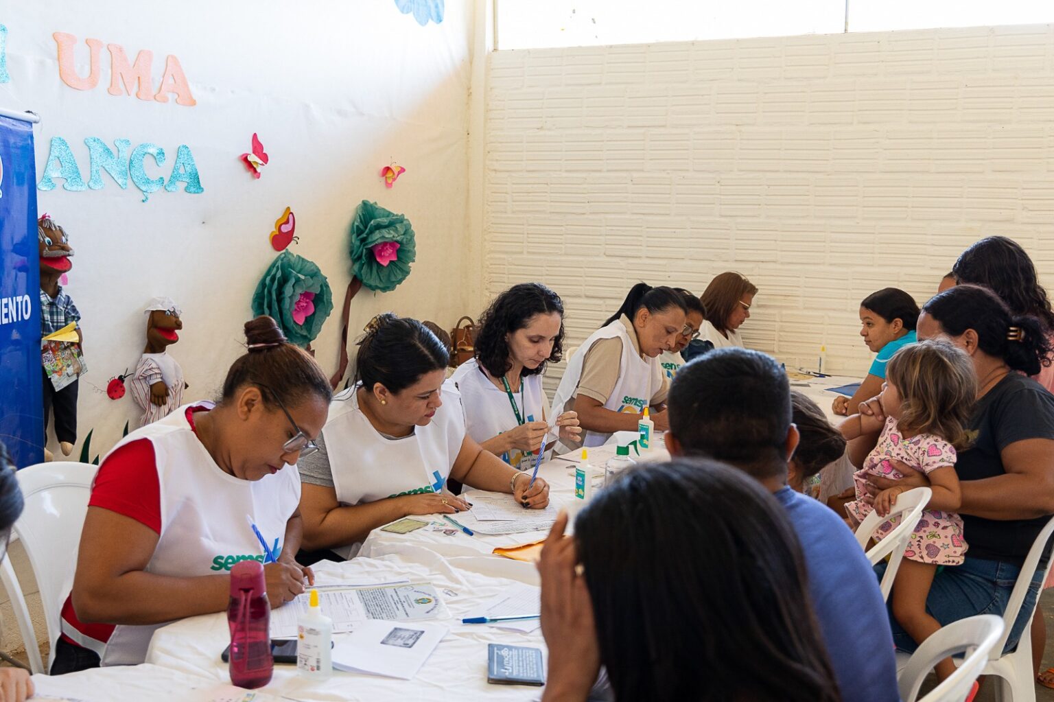 Centenas de moradores da Vila Sanção compareceram à escola municipal Alegria do Saber, no sábado, 19, para participar do Semsi + Ação. O projeto levou uma série de serviços essenciais à comunidade, como emissão de RG, CPF, regulação da Junta Militar, carteira de trabalho digital, entre outros atendimentos relevantes.